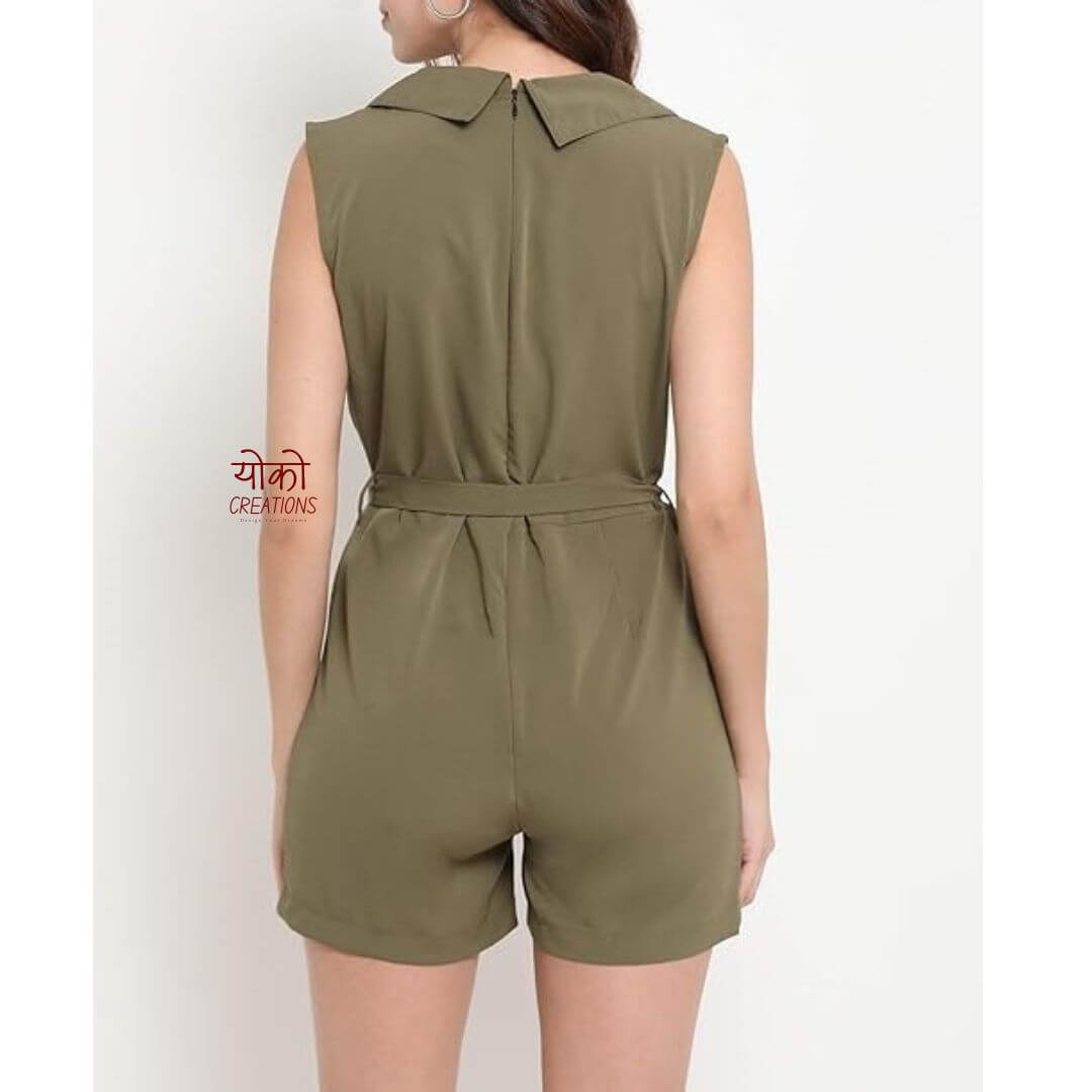 Expertly crafted from high-quality poly crepe, this Solid Green Sleeveless Jumpsuit for Women is the perfect addition to your wardrobe. With its comfortable and stylish design, this jumpsuit is comfortable for casual outing and sunny days. Experience the ultimate blend of fashion and comfort in this must-have piece.