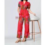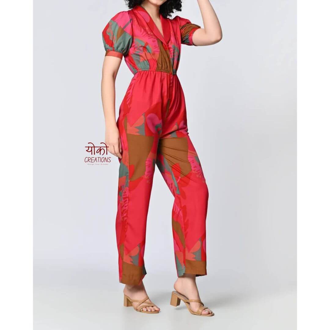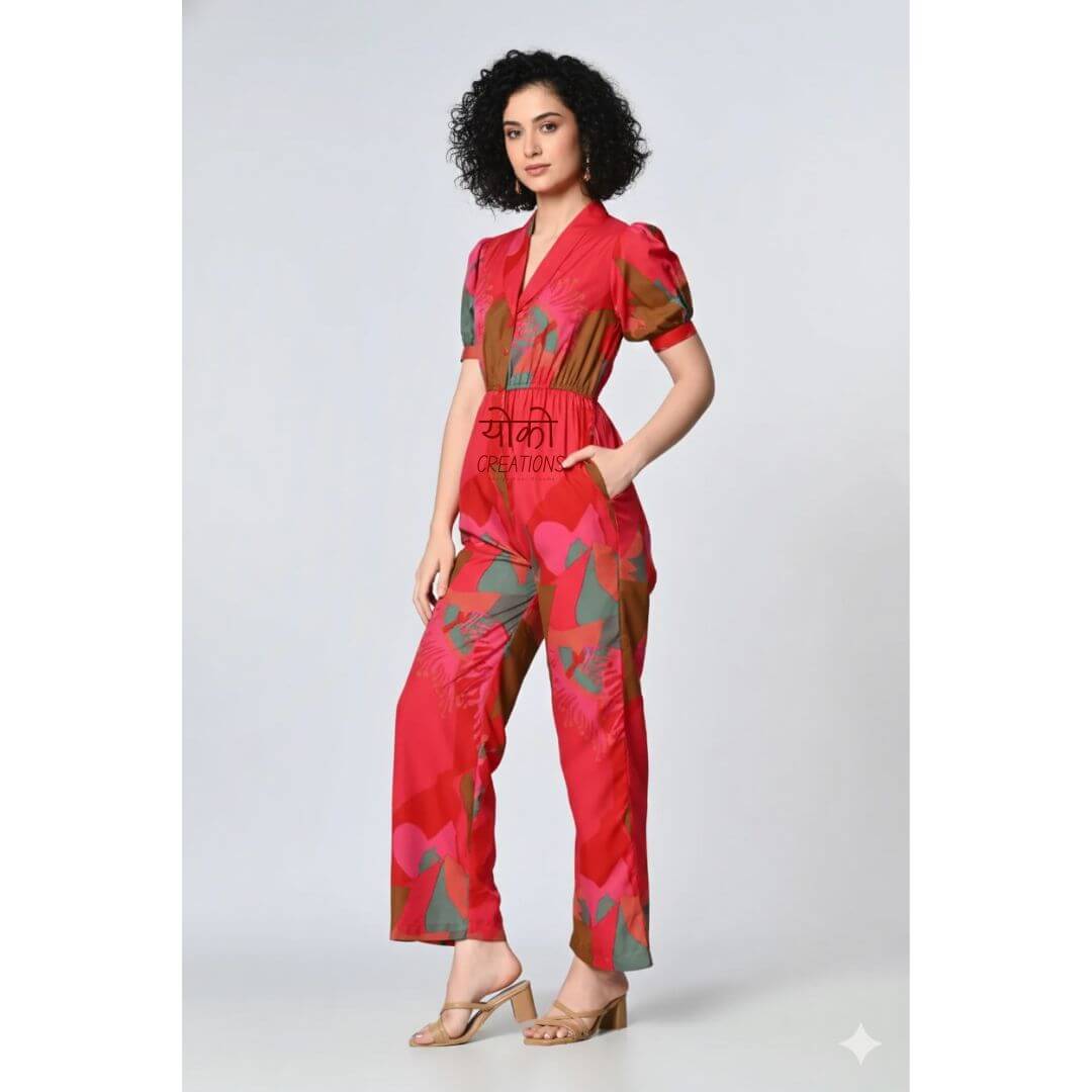 Elevate your wardrobe with this Multicolor Printed Overlap Neck Jumpsuit. The vibrant colors and unique design add a touch of sophistication to any ensemble. The overlap neck not only adds visual interest but also provides a comfortable and flattering fit. Look stylish and feel confident in this must-have jumpsuit.