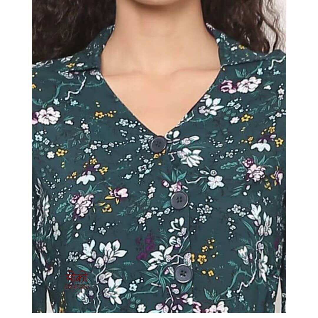 Expertly crafted from high-quality Cotton Reyon, this Printed Green Short Dress for Women is the perfect addition to your wardrobe. With its comfortable and stylish design, this dress is comfortable for casual outings, brunch & summer days. Experience the ultimate blend of fashion and comfort in this must-have piece.