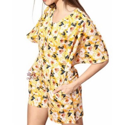 YOKO Classy Yellow Printed Short Jumpsuit